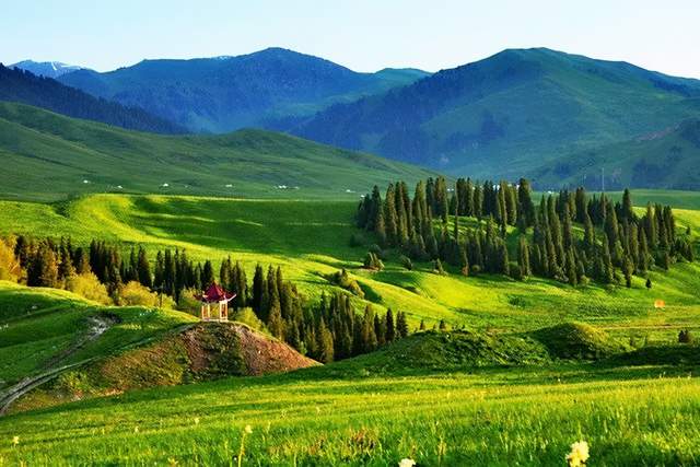 唐布拉大草原是亞洲四大最美草原之一,素有“百里畫卷,天然畫廊”之美譽(yù),被譽(yù)為人間天堂。有詩(shī)人形容唐布拉是“天神戀愛的地方”,每至初夏,有無數(shù)畫家、攝影家來此寫生和采風(fēng)。地處新疆天山北部尼勒克縣境內(nèi)的唐布拉大草原進(jìn)入初夏,嫩綠的草原猶如一幅巨大的綠色地毯從天際鋪展開來!