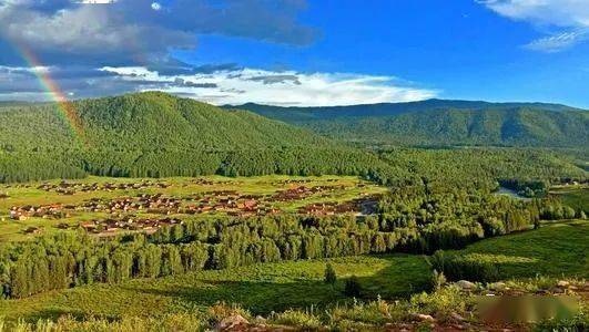 這里就是一個被遺落世間的童話世界,進入禾木村,首先進入眼簾的是一棟棟的小木屋、成群結隊的牧群、重巒疊嶂的群山和枝葉濃茂的森林,蒼翠欲滴的草地與碧空如洗的藍天相互呼應。木屋,小橋流水,炊煙裊裊、樺林還有石橋,匯集成一幅幅優(yōu)美的風景畫。