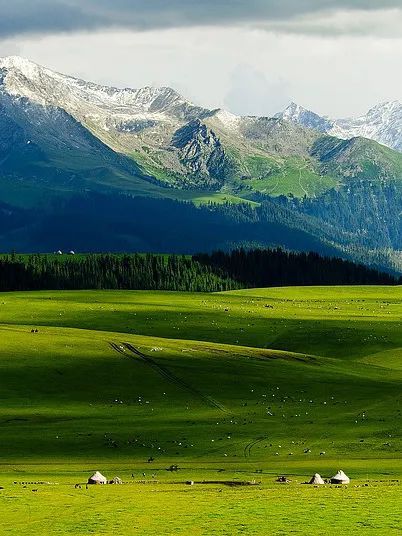 這種由草原、雪山、松林結(jié)合在一起的美,就是那拉提草原的過人之處。