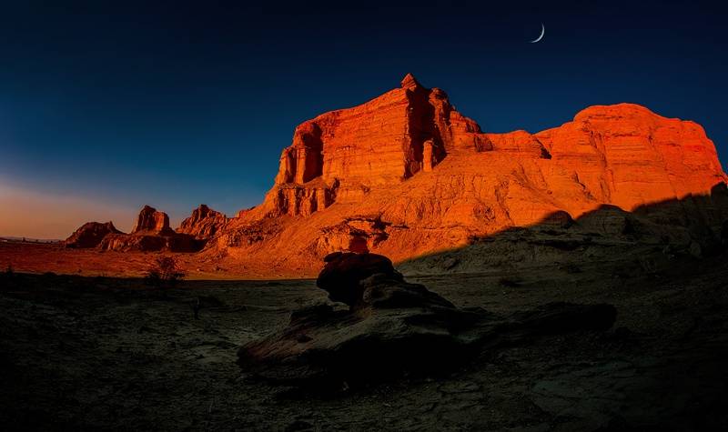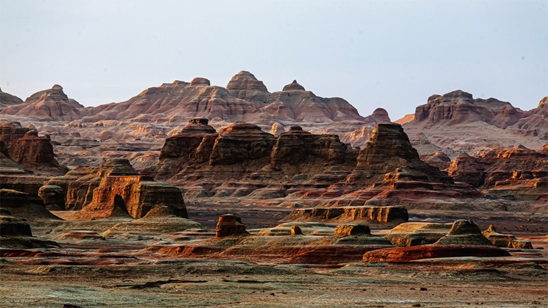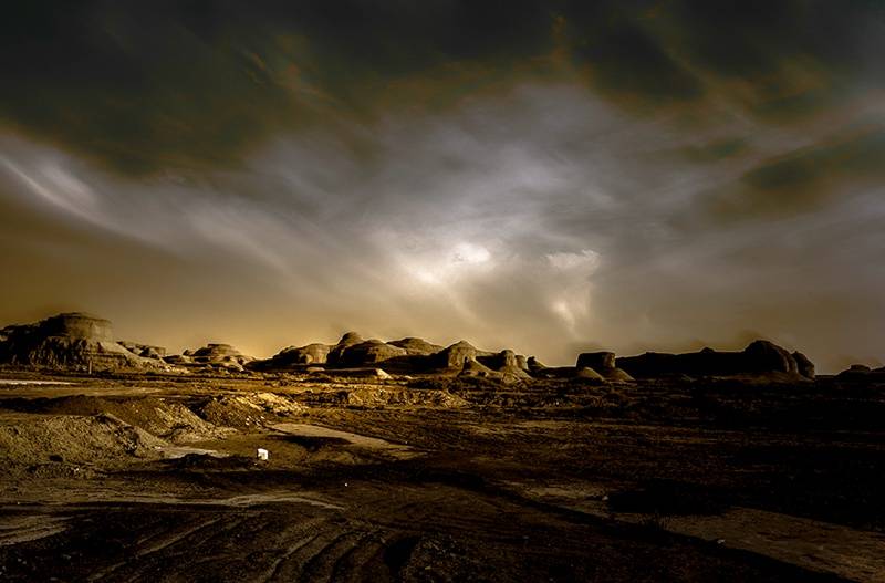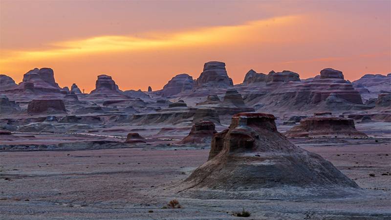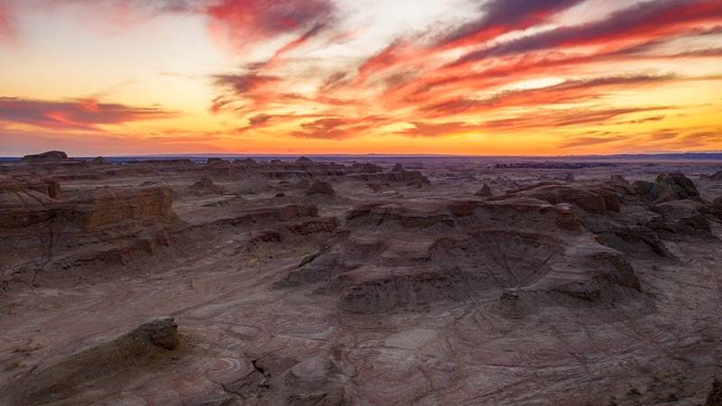 新疆烏爾禾風(fēng)城,位于準(zhǔn)噶爾盆地西北邊緣的佳木河下游烏爾禾礦區(qū),西南距克拉瑪依市100公里。該處有獨特的風(fēng)蝕地貌,形狀怪異,且四季狂風(fēng)不斷,被當(dāng)?shù)厝朔Q為“魔鬼城”。其實,這里是典型的雅丹地貌區(qū)域?!把诺ぁ笔蔷S吾爾語“陡壁的小丘”之意,是在干旱、大風(fēng)環(huán)境下形成的一種風(fēng)蝕地貌類型。