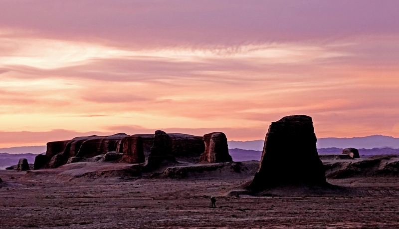 千百萬年來,由于風(fēng)雨剝蝕,地面形成深淺不一的溝壑,裸露的石層被狂風(fēng)雕琢得奇形怪狀,有的像宮殿,有的像金字塔,有的像雄鷹展翅,千姿百態(tài),令人浮想聯(lián)翩。就連許多電影都把魔鬼城當(dāng)作了外景地,比如《臥虎藏龍》、《七劍下天山》就是在這里拍攝的。