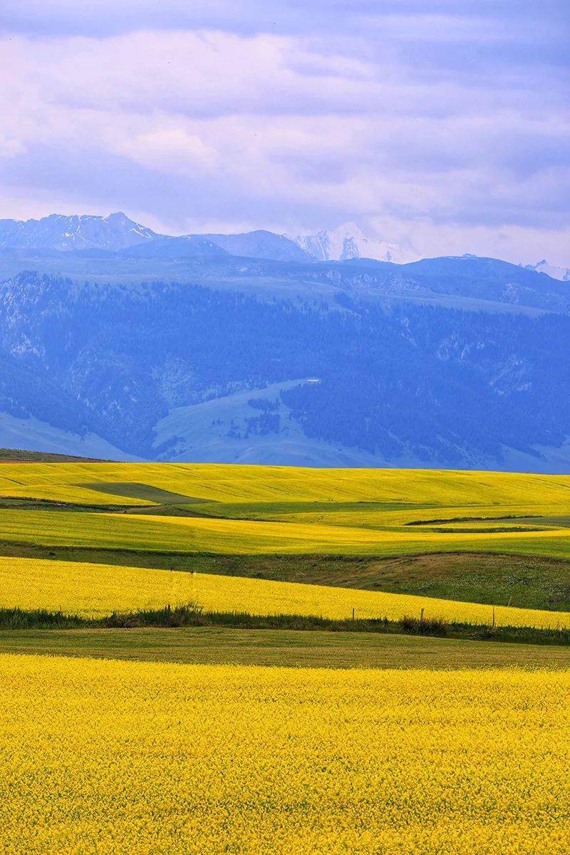 再說伊犁,除了6月的薰衣草,7月昭蘇會開出大片的油菜花,八月會有大片的紫蘇,喀拉峻草地上也會開出五彩的花毯。