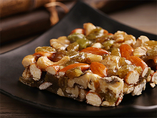 所謂的切糕是瑪仁糖在新疆外地區(qū)民眾在不知道名稱的情況下根據(jù)販賣時的特點所賦予的名稱,是一種新疆維吾爾族民眾采用傳統(tǒng)特色工藝,選用核桃仁、玉米飴、葡萄干、葡萄汁、芝麻、玫瑰花、巴丹杏、棗等原料熬制而成的民族特色食品。因出售時一般用刀從大塊瑪仁糖切下小塊,因此又被稱作“切糕”。