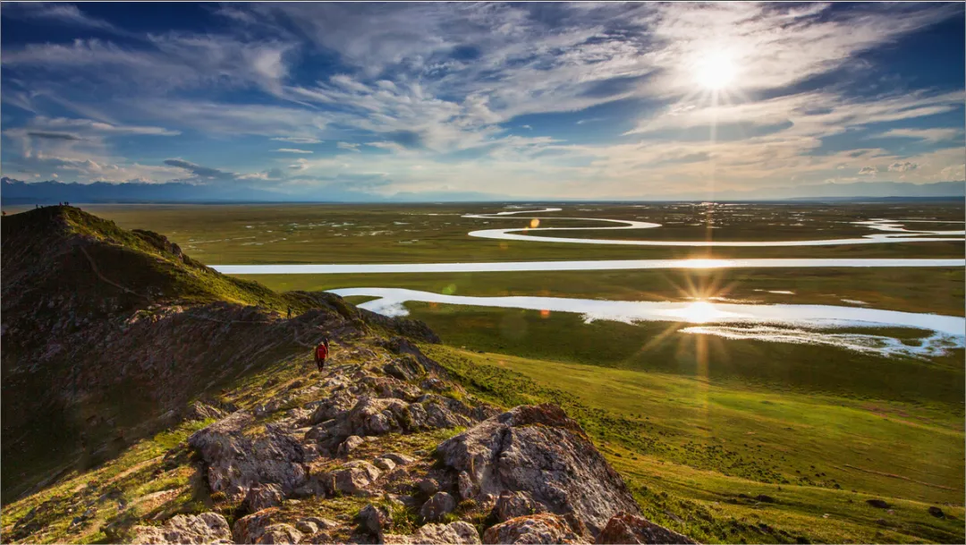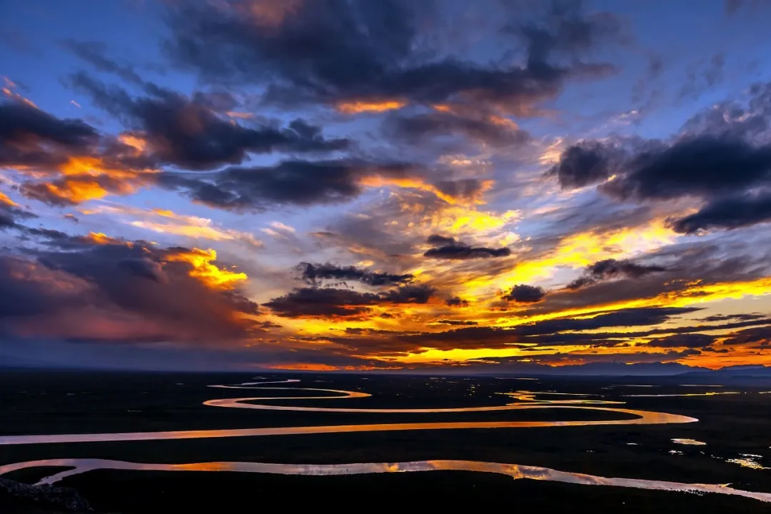 “我找到九個太陽的所在地了!”有人高呼著。穿過巴音布魯克的開都河走進(jìn)了人們的視線里,時至傍晚,開都河在夕陽的照射下,倒影出落日的形狀,一顆、兩顆、三顆……落日余暉中,真的在同一時間看到了九個太陽的存在。這里不是黑暗的山谷、也不是干裂的大地,而是一片廣袤的大草原,開都河像是一條銀色的絲帶自由的舒展在這片無垠的大地上,教人不得不生出“此景色只應(yīng)天上有,人間能有幾回得”的感慨。